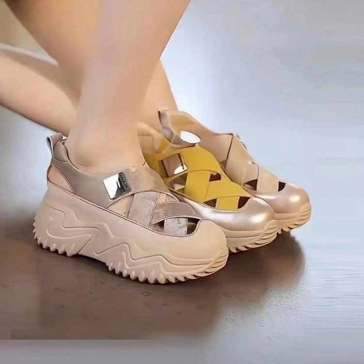 Ice silk heightening air cushion women‘s flyingknit rocking shoes